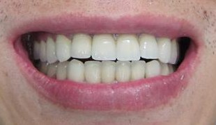 Case: Whitening of discolored teeth. Minor orthodontic treatment and placement of two porcelain laminate veneers on damaged lower central incisors, to complete aesthetic treatment.
