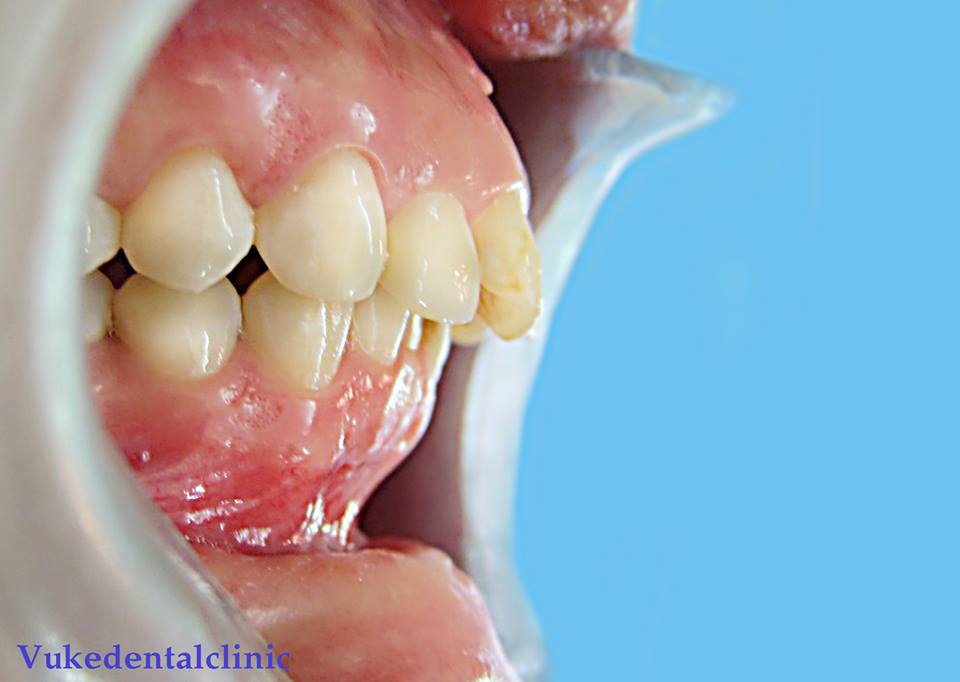 Protrusion of upper incisors, also called "Class II malocclusion", is the result of excessive growth of the upper jaw (maxilla), or the reduced growth of the lower jaw (mandible), or a combination of both.